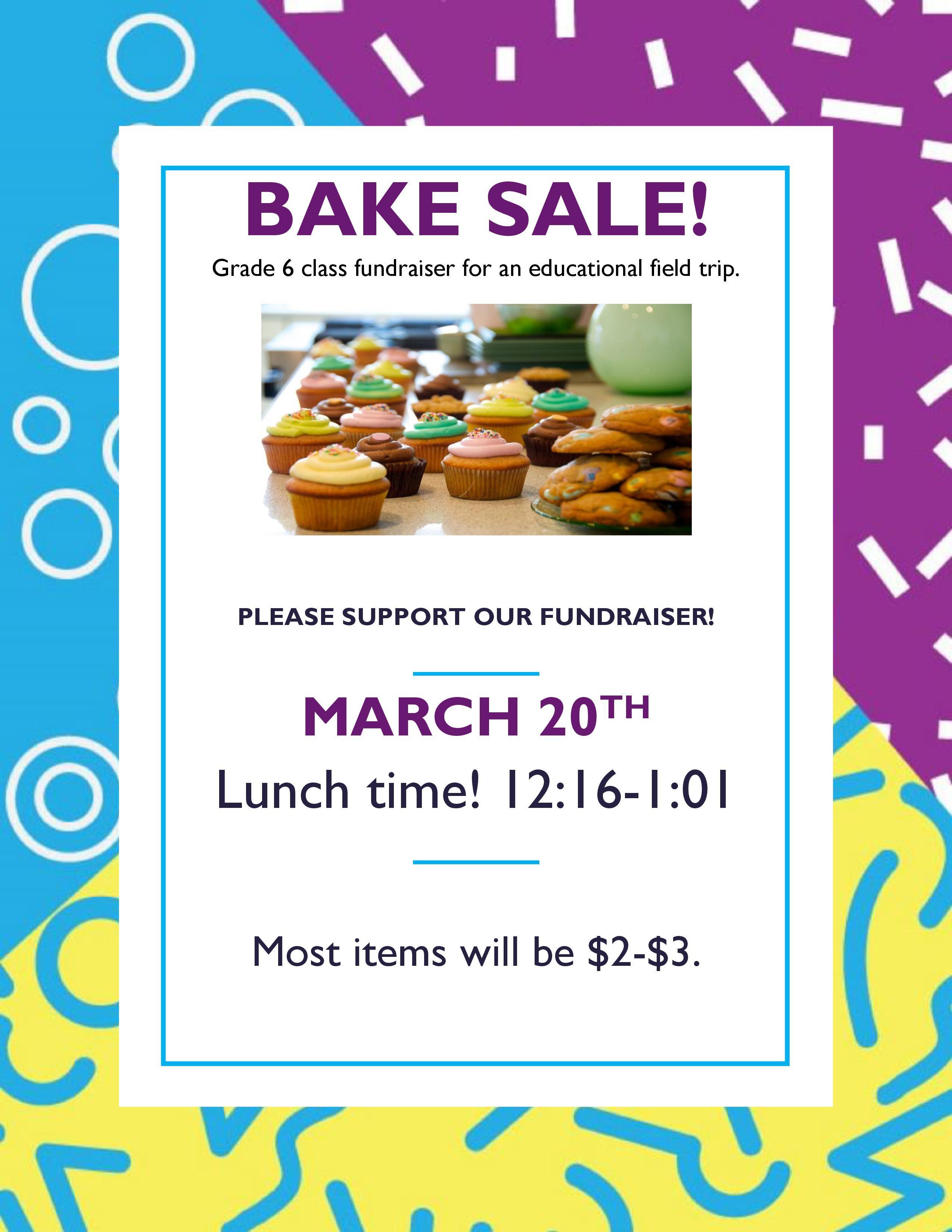 **** NEW DATE Gr. 6 Bakesale March 21st, 2024